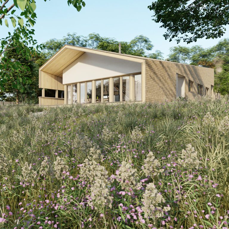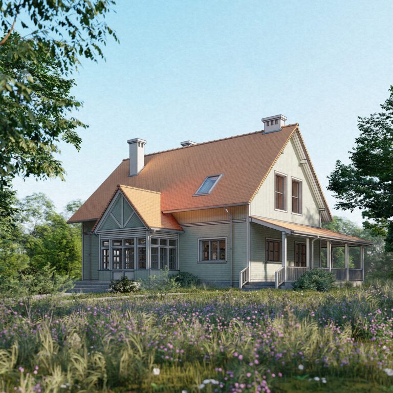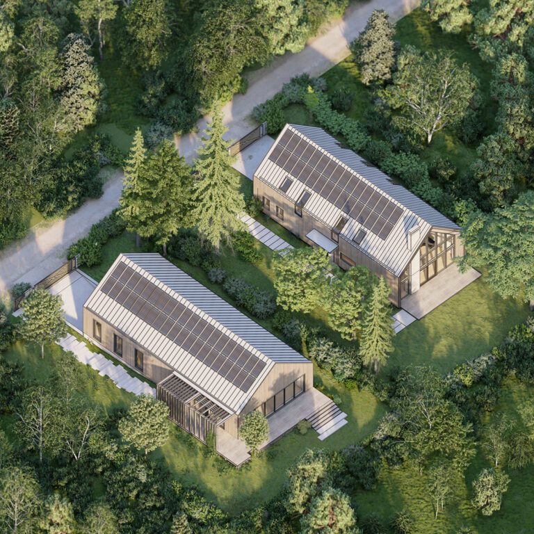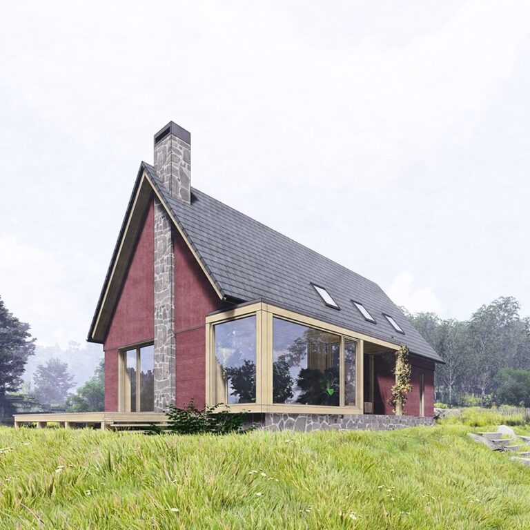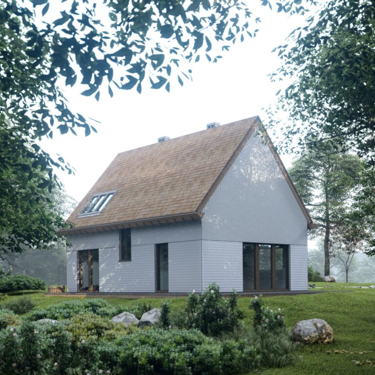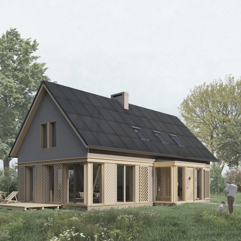 Projekt neutralnego klimatycznie i zdrowego domu inspirowanego tradycyjną architekturą kurpiowską.