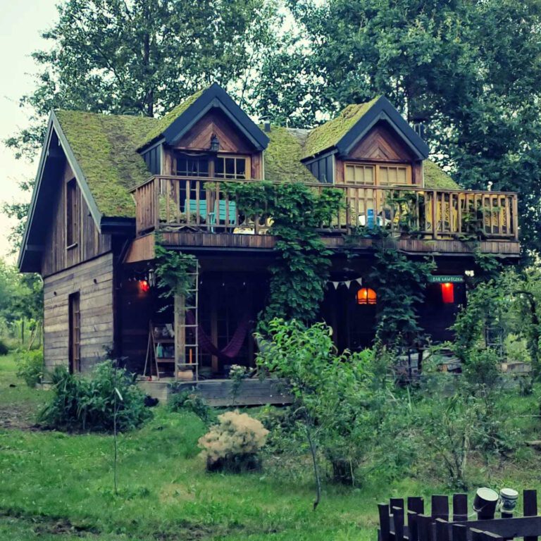 Dom rodzinny budowany własnymi rękoma z drewna i konopii uprawianych na własnym polu.
