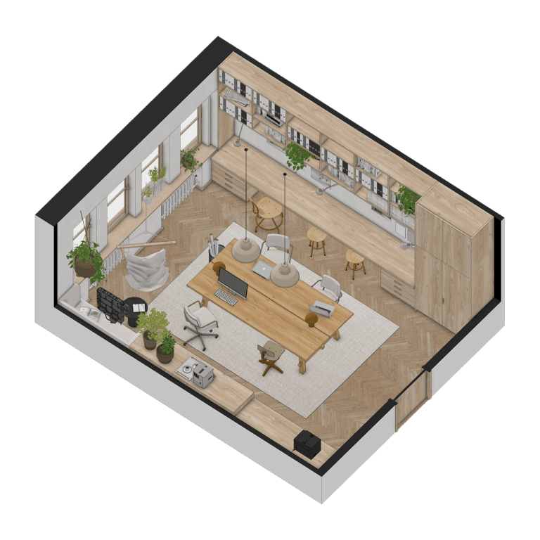 Zdrowe, wygodne i przyjazne pokoje biurowe sprzyjające koncentracji i kreatywnej pracy.