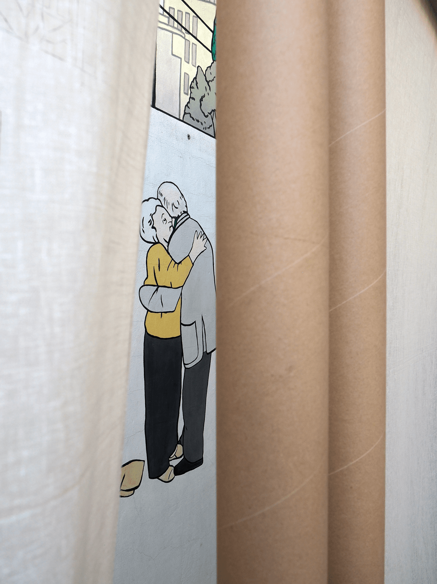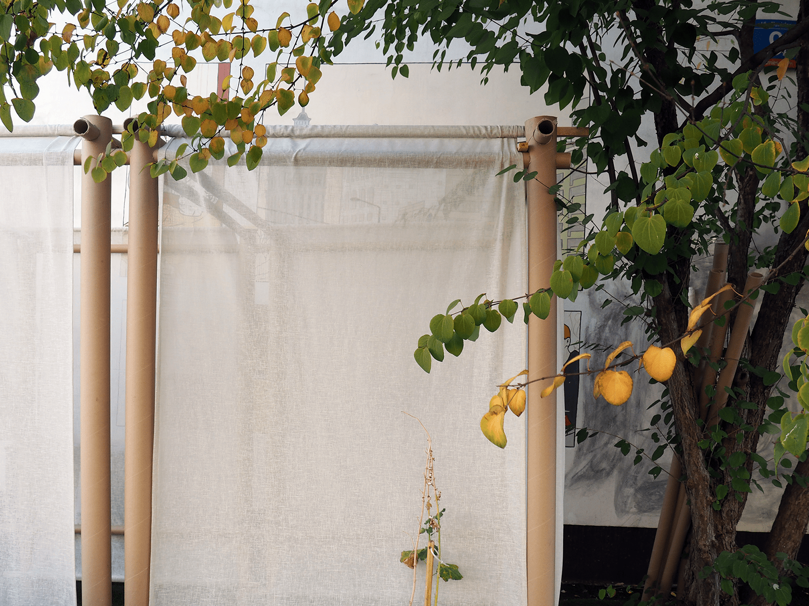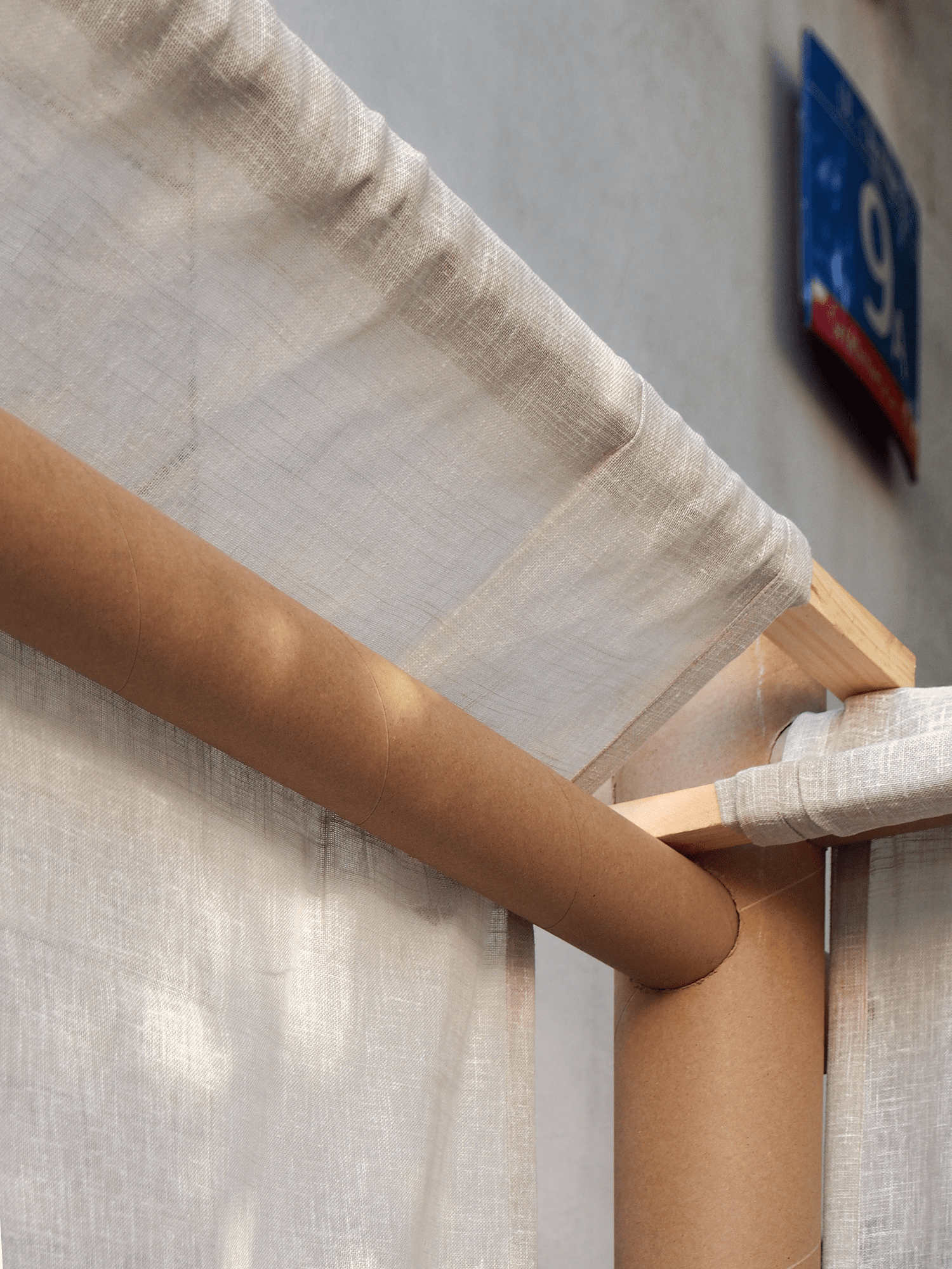 Do zbudowania tradycyjnej sukki wykorzystaliśmy współczesny system w rzeczywistości służący niesieniu pomocy potrzebującym – nieznacznie zmodyfikowany, opracowany przez Shigeru Ban Architects Paper Partition System. To metoda szybkiego i taniego organizowania przestrzeni w tymczasowych schronieniach tworzonych dla ofiar katastrof naturalnych i wojen. Na bazie konstrukcji z powszechnie dostępnych tekturowych rur powstają lekkie ściany dające uciekinierom poczucie prywatności i własnego miejsca.